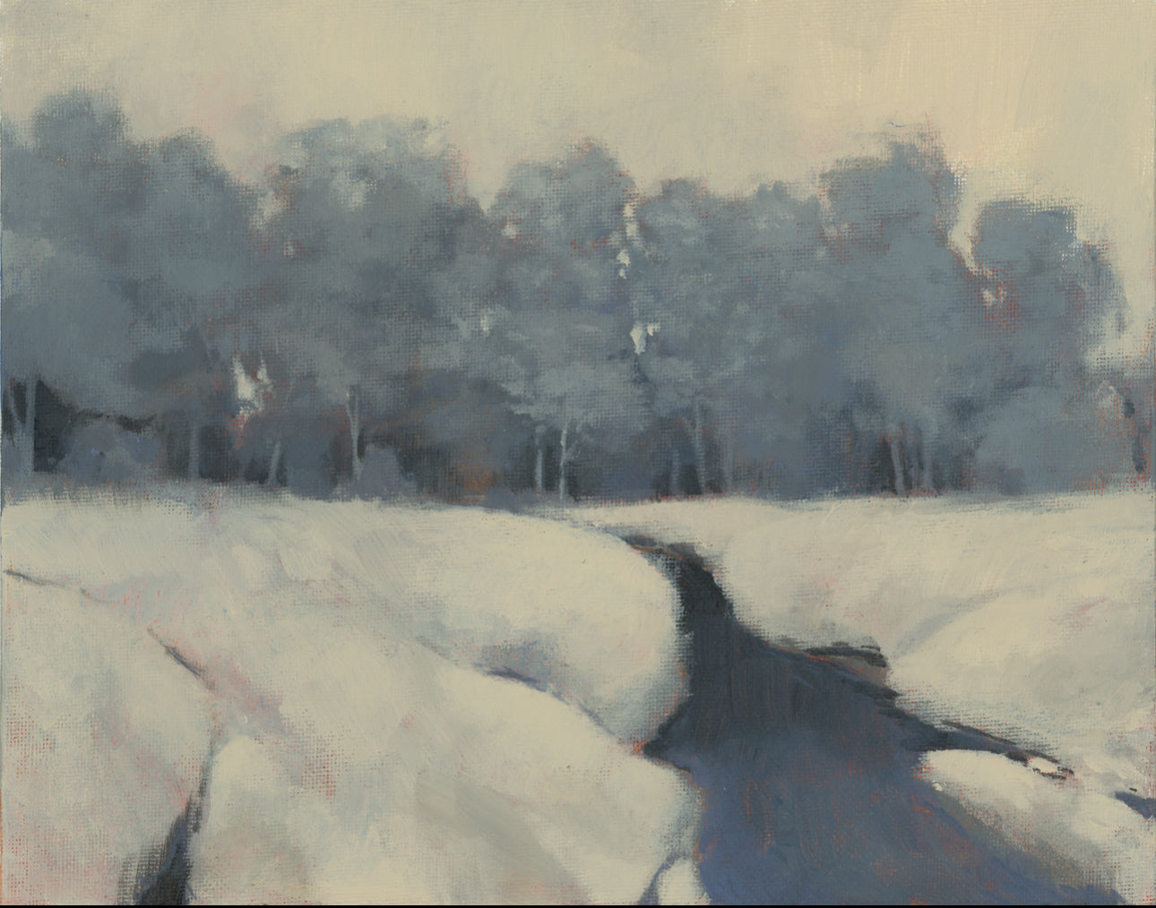 8x10in acrylic on canvas panel. Original painting of a frosty wintery river. Comes in a thrifted wood frame (not pictured).